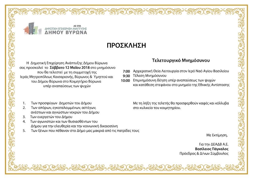 Πρόσκληση Μνημόσυνου 12/05/2018